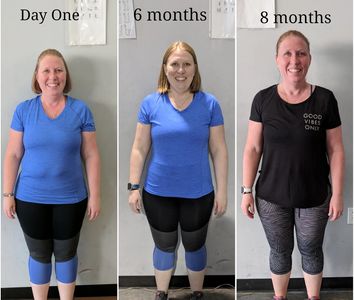"The first picture was taken in March of this year after having had a baby a month and a half before. I’d gained so much more weight than I thought I would, and after being extremely uncomfortable and unable to exercise for a majority of the pregnancy, my overall fitness and health was at an all-time low. I gave myself enough time to recover, and then I started looking for gyms so I could regain the muscle and confidence I’d had before getting pregnant. I started going to New Start in April, and was met with warm welcomes. Brookes especially made sure that I was comfortable and knew what I was doing, taking time to instruct and guide me so I could gain confidence in the gym again. The second picture is about four months after starting this journey, 25 pounds down and so much happier with my body and how strong I’ve been feeling. New Start Fitness has become a staple of my week, and I always leave class feeling accomplished and proud of how far I’ve come— largely due to the amazing coaches. Brookes, Lauren, and Lori are usually who I have class with, though Kristy and Denise are incredible as well. I’m so glad I took the leap and started coming to New Start!"- Olivia T